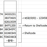 지난 포스팅에서는 쉘코드에 들어가기 앞서 [지뢰찾기로]로 간단한 연습 포스팅을 올렸었다. 어제가 연습용인 이유를 다시 간단히 적어보자면 메인함수로 리턴을 해야 하는 값을 강제로 WinExec가 있는 [7C8623AD] 주소로 바꾸어서 한번만 실행 가능하도록 했기 때문. 오늘은 지난 시간에 이어 제대로 된 쉘코드(이번엔 [계산기])를 작성해보겠다. 쉘코드 작성하기 위한 스택 도식화필자가 만들고자 하는 쉘코드가 실행하기 위해 건들어야 할 스택부분을 도식화하였다. 이 그림을 참고하여 글을 읽어 내려가 보자. 계산기 실행 코드 Immunity Debugger 실행 메인함수 Immunity Debugger 의 Disassembly 화면이 보인다. 차례대로 "메모리 address, 기계어, 어셈블리, content..